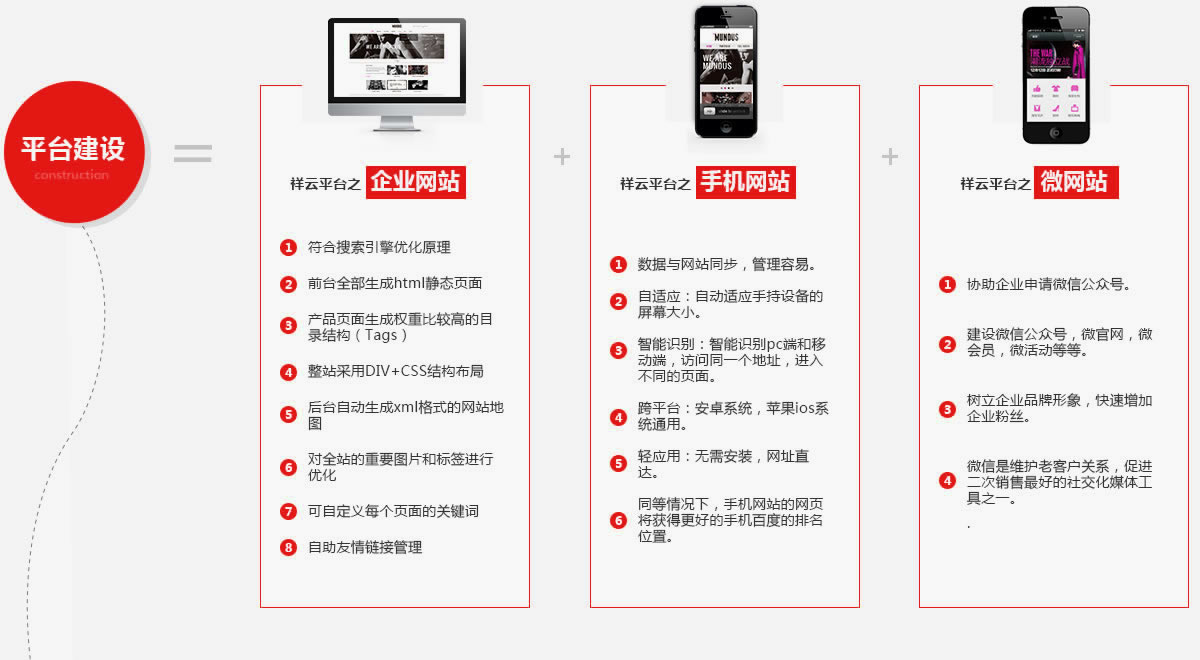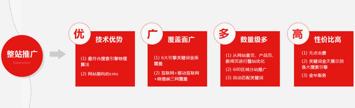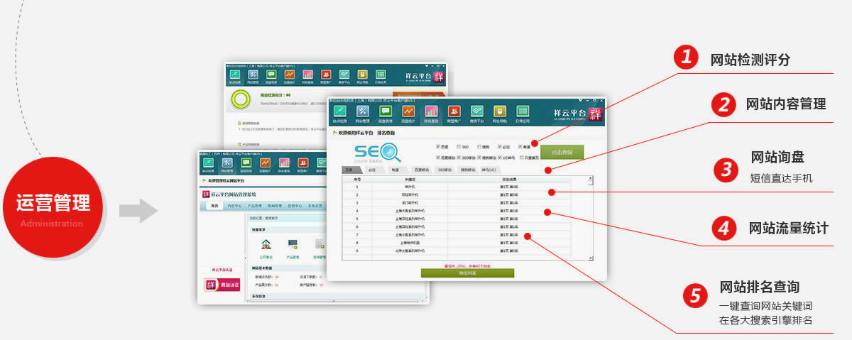 1.百度、360等主流搜索引擎实现排名 2.移动端手机展示及排名展现 3.微信端品牌展示及二次推广